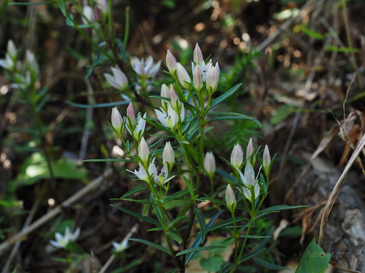 奥高尾のもみじ台から一丁平の登山道沿いにはセンブリ(千振)の群生があちこちに見られ、高尾にこんなに沢山あるとは新発見。