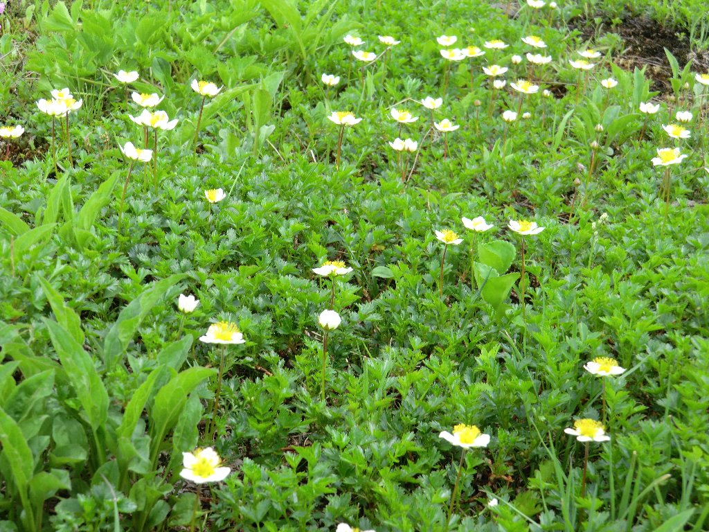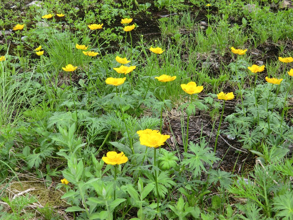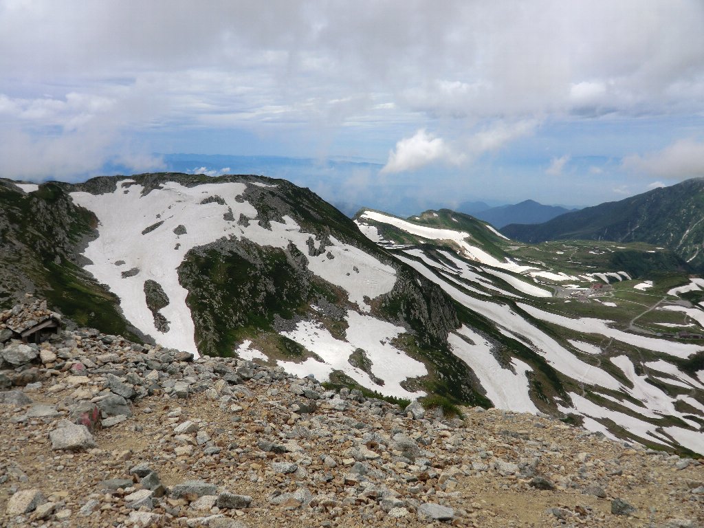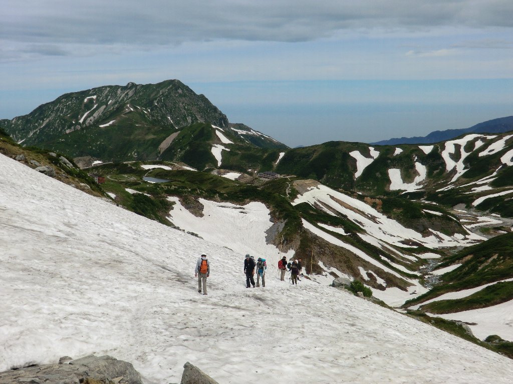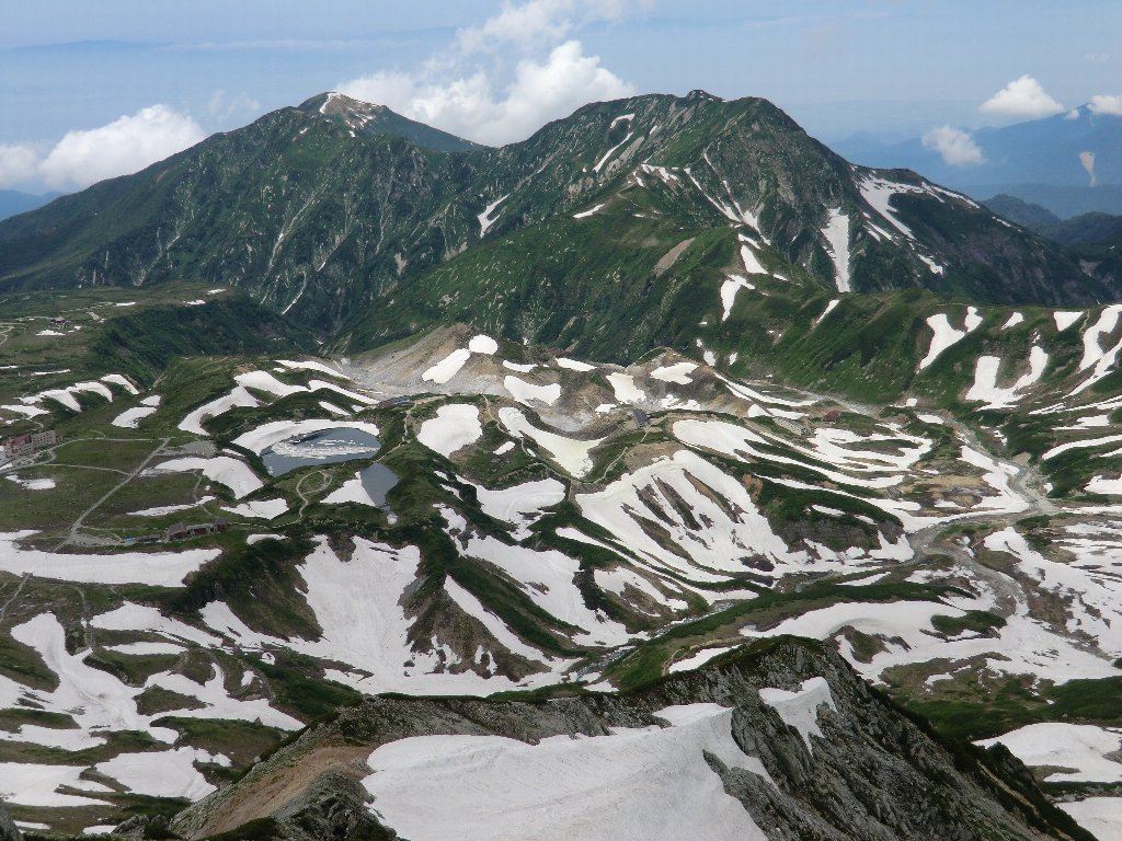 3月11日の東日本大震災の影響で今夏は電力抑制対策として平日と土日の振替等を行い7月と8月に9日間の夏季休暇が設けられた。7月は18日~26日だが16・17日の土日を年休とし11連休にした。 初夏の3000m級の山に登りたかったのと黒部ダム・室堂平に行ったことがないので立山連峰の雄山に妻と登ることにした。 自宅発(7/17 22:50)→中央高速→梓川SA(仮眠)→扇沢着(7/18 6:45)発(7:30)<トロリーバス>→黒部ダム<徒歩>→黒部湖<ケーブルカー>→黒部平<ロープウェイ>→大観峰<トロリーバス>→室堂着(8:55)<立山玉殿の湧水>→室堂平発(9:15)→一の越し山荘→三の越し→雄山(11:55)→雄山神社参拝(12:20)→雄山発(13:00)→一の越し山荘→室堂平(15:00)→ミクリガ池→室堂発(16:00)→大観峰→黒部湖→黒部ダム→扇沢着(17:20)発(17:50)→温泉入浴(18:30)→中央高速(20:00)→諏訪湖SA(仮眠)→自宅着(7/19 3:00) 室堂平から一の越し山荘にかけて、イワカガミ・チングルマ・シナノキンバイ・コバイケイソウなど残雪の中美しい色で咲いていた。 また、残雪が多く室堂平から一の越し山荘の間の登拝道は雪の中を歩くことしばしば、夏スキー、スノーボードを楽しんでいる姿も見られた。ある程度の残雪を見越してステッキでは心配なので、前日にストック2本を購入して妻に使ってもらい、シャーベット状の滑りやすい場所もなんとか無事通過することができた。