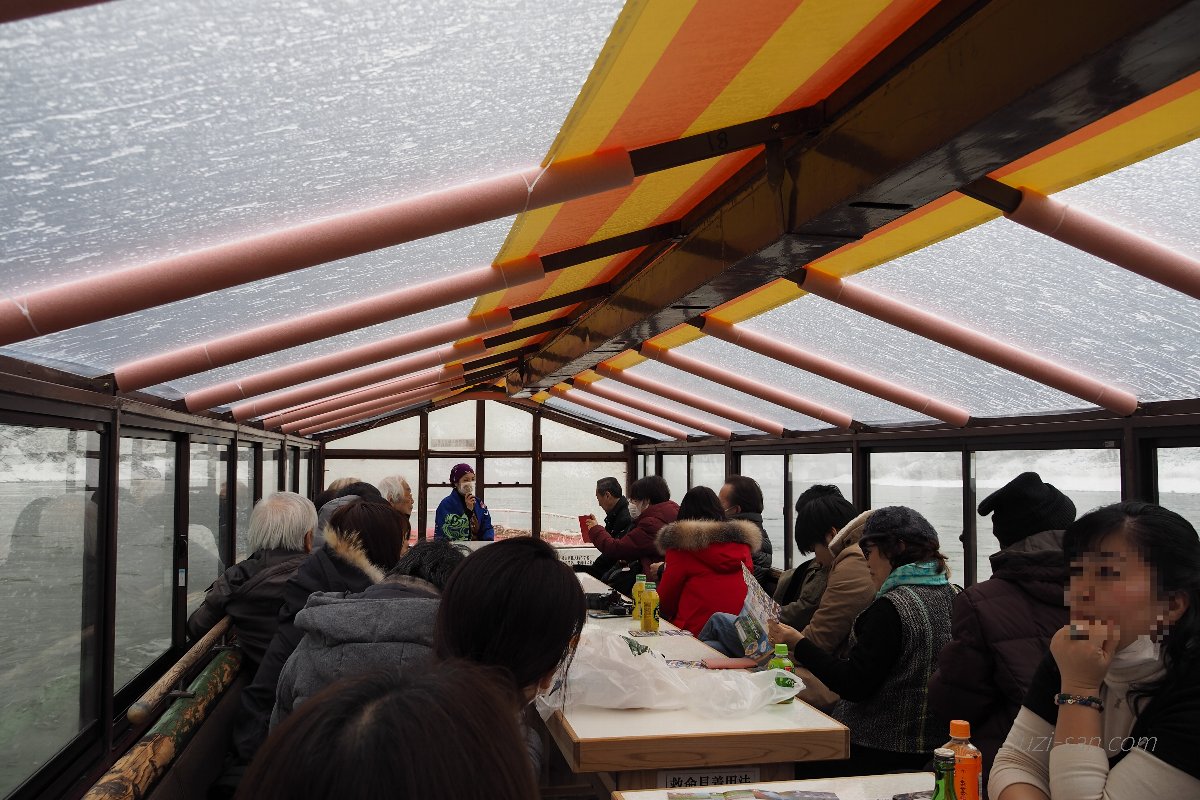 一泊二日の東北旅行、クラブツーリズムのツアー旅行で新幹線とバス移動の旅である。 主な行先は最上川舟下り、山形蔵王樹氷、鹽竈神社参拝。 ■最上川舟下り 最上川芭蕉ラインの舟下りで、戸沢村の古口港(戸沢藩船番所)から草薙港(川の駅・最上峡くさなぎ)間の約12㎞を1時間ほどの屋形舟の旅、舟頭が美人女性であった。 ■山形蔵王樹氷 2月7日、蔵王ロープウェイ(山麓線)→雪上車(ナイトクルーザー号)→樹氷ライトアップ 2月8日、蔵王ロープウェイ(山麓線、山頂線)→頂上での樹氷、地蔵尊 ■塩釜神社参拝 宮城県塩竃市の塩釜神社、海上安全・大漁満足・武運長久・国家安泰・安産守護・延命長寿の信仰