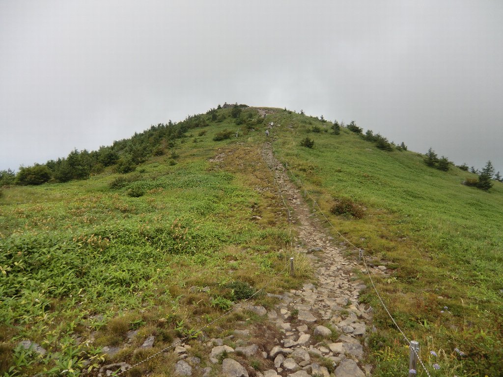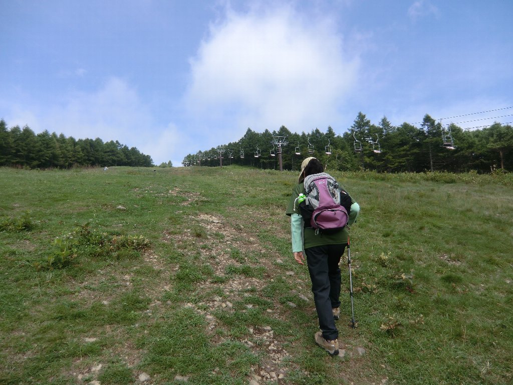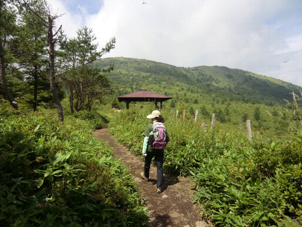 連日の酷暑に耐えられないので涼しいところに妻と出かけることにした。場所は長野県湯ノ丸高原の湯ノ丸山、上信越道の小諸ICから15kmの湯ノ丸高原。 往路、自宅出発(5:50)→圏央道→関越道→上信越道(横川SA朝食休憩)小諸IC→地蔵峠着(9:15)→地蔵峠スタート(9:40)→スキー場ゲレンデ(10:00)→ツツジ平(10:30)、休憩→湯ノ丸山南峯(11:30)、2101m→湯ノ丸山北峰(12:00)、昼食→湯ノ丸山(南峯)→湯ノ丸山と鳥帽子岳の鞍部(12:55)→臼窪湿原(13:50)→地蔵峠着(14:10)、歩行時間4.5H、歩数計12,500歩、歩行距離約6km 帰路、地蔵峠発(15:15)→上信越道(渋滞)→関越道(渋滞)→圏央道→入間の湯で夕食と汗を流す→自宅着(21:45)、 沢山の高原植物(ノアザミ、ウスユキソウ、ハクサンフウロ、ニッコウキスゲ、クルマユリ、ツリガネニンジン、ウメバチソウ、マツムシソウ、ヤナギラン、ヤマオダマキ、ワレモコウ、ギボウシ、ホタルブクロ、等々)と 下界とは別世界の涼(山頂の気温が19℃、少し風があったので体感気温は15度位であった)を満喫できた。