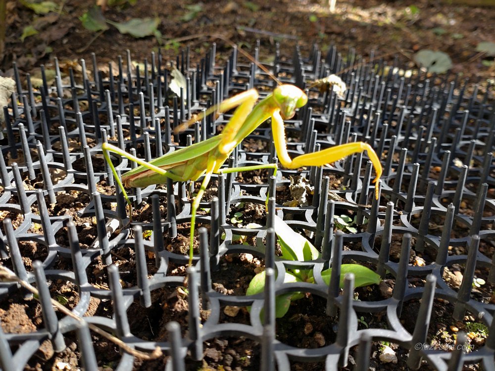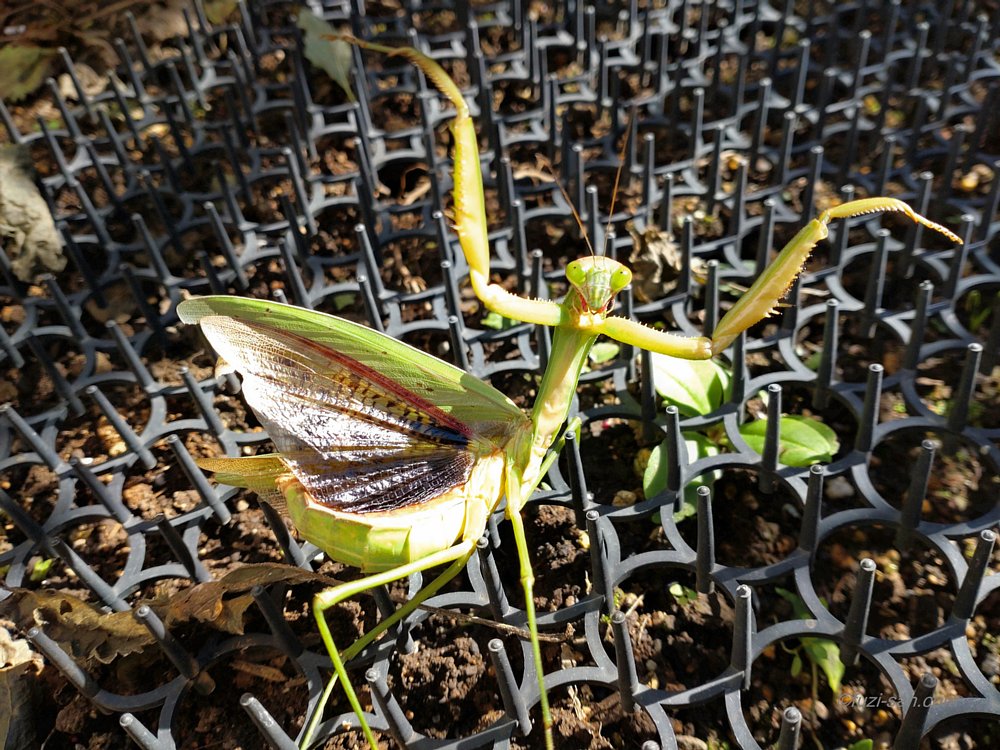 今日は晴天で暖かい、庭の掃除をしていたらカマキリに遭遇。 捕まえようとしたら威嚇されてしまい。捕まえるのをあきらめた。 お腹が大きかったのでメスで、もうすぐ卵をどこかに産み付けるのではないか。
