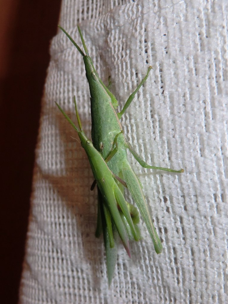 先日のペアであるか定かではないが、台風12号の影響がまだ残っている小雨を避けてなのか夜なのに家の中に迷い込んできました。オスは背中に乗っている小さいほうで、メスのほうが倍ほど大きく(5cmくらい)、交尾以外のときでもメスの上にオスが乗っている姿が良く見かけられる。 オンブバッタに似たショウリョウバッタ(精霊蝗虫)と間違えやすいがオンブバッタは飛ぶことはなく後脚での跳躍や歩行で移動する。ショウリョウバッタはオンブバッタの倍ほど大きく飛ぶことができ、「キチキチキチ」と音を立てながら飛ぶので別名キチキチバッタとも呼ばれメスがオスをオンブすることはない。