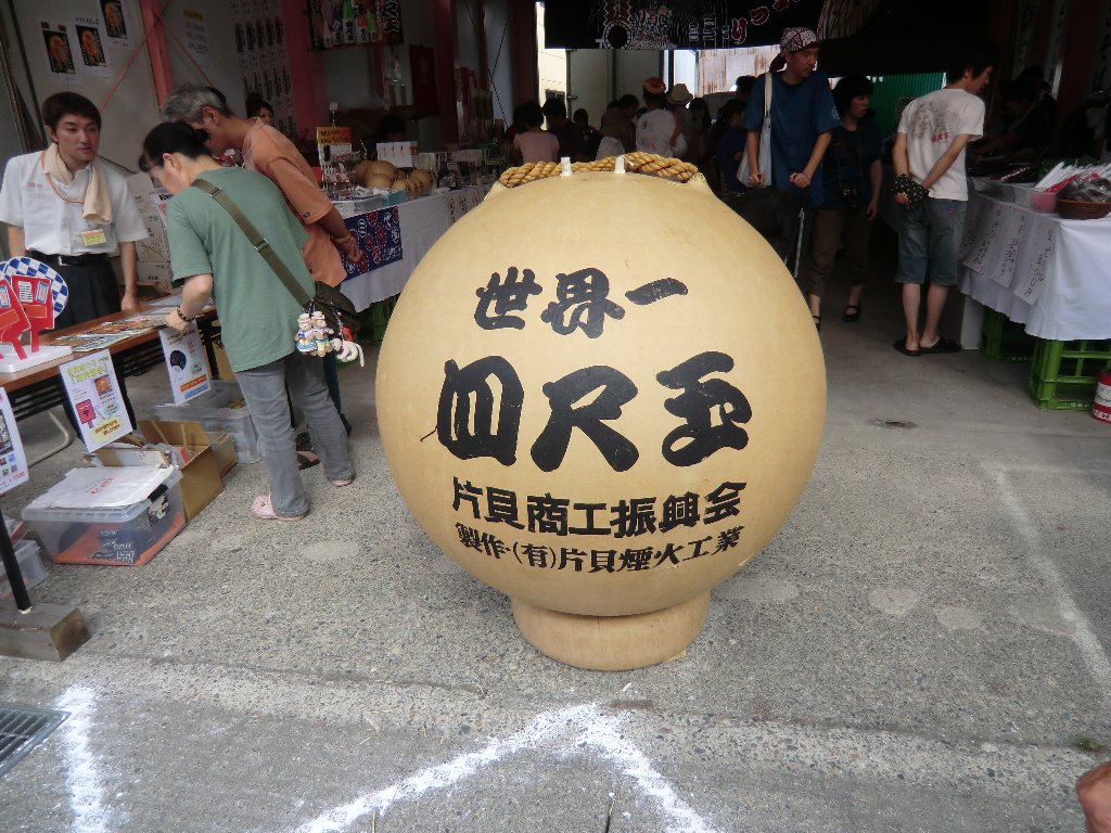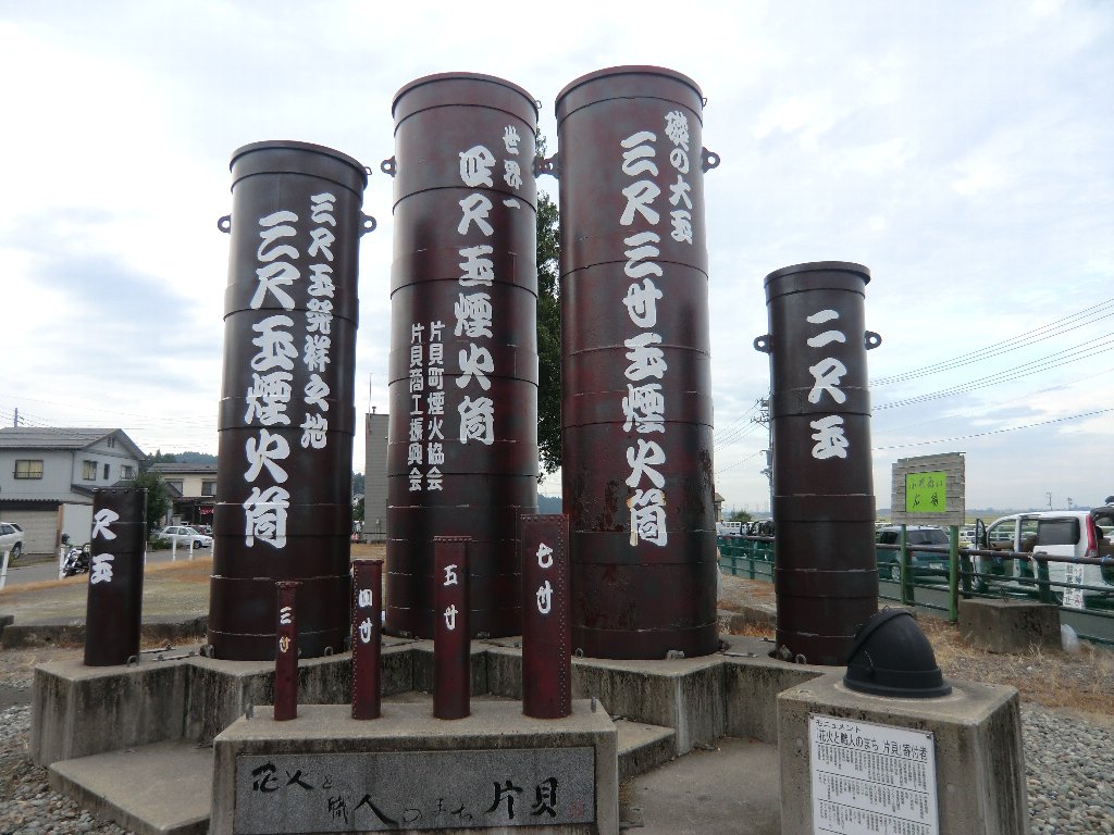 9月9,10日に新潟県小千谷市の片貝町で行われる片貝まつりの花火見物に日帰りの強行軍で妻とその友達と出かけた。 9月9日10:30自宅発→圏央道・関越道→小千谷IC→片貝町着14:00、花火は19:30からなので祭り見物・仮眠→花火見物19:30~22:00→片貝町発22:45→関越道・圏央道→自宅10日02:00着 片貝まつりの花火は世界一大きい四尺玉を打上げるので有名で、打上筒の大きさはとてつもない大きさである。打上げる花火は浅原神社に奉納される花火(煙火)を奉納者名とメッセージの説明が行われて次々に打上げられ、一尺玉が大半で、二尺・三尺玉もあり、最後に世界一の四尺玉が打上げられて終了となる。