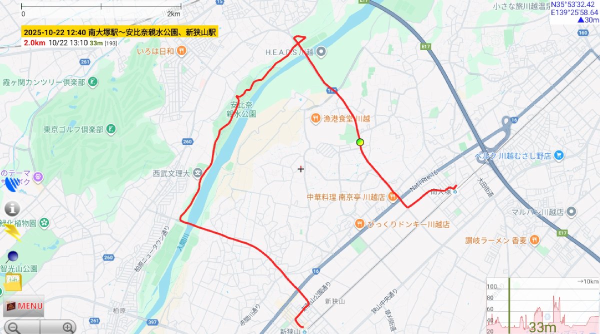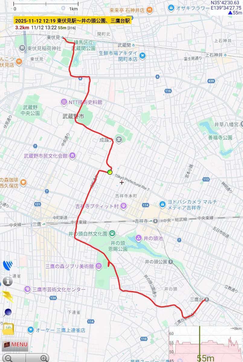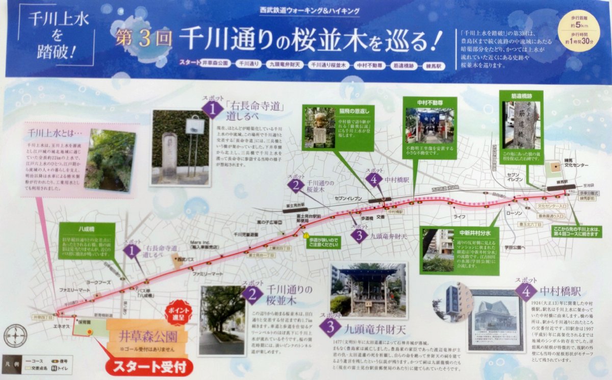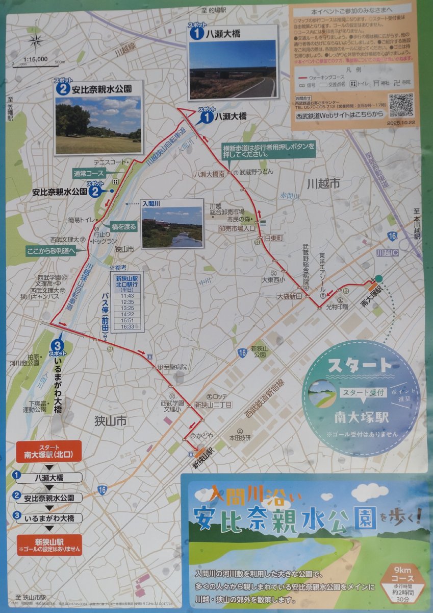 ★2025年11月23日(日) 曇り/晴れ、気温(青梅)15.0/5.7℃、JR東日本、みずまちあきしまX秋:「みずの恵み」と紅葉で心を癒す 昭島のいちょう並木の紅葉と玉川上水の紅葉を楽しめたウォーキングであった。 ゴール後に観光案内所でアンケートに答えて「あきしまの水」アルミボトル缶をいただいた。 ★2025年11月21日(金) 晴れ、気温(青梅)17.4/1.9℃、秩父鉄道、長瀞の紅葉の名所を訪ねる 朝の冷え込みは厳しかったが快晴で穏やかなウォーキング日和であった。 荒川(金石水管橋)・宝登山神社・月の石もみじ公園、長瀞狭と紅葉が見ごろのコースを満喫した。 ★2025年11月12日(水) 晴れ|曇り、気温(青梅)13.9/4.4℃、西武鉄道、武蔵の散歩 吉祥寺・三鷹を散策! 晴れてはいるが雲が多くどちらかというと曇り日という感じの中のウォーキング。 成形学園前のケヤキ並木は紅葉が始まっており黄色が綺麗、井之頭公園からの玉川上水緑道はとても爽やかに歩けた。 ★2025年11月01日(土) 、気温(青梅)20.4/10.8℃、JR東日本、奥多摩の大自然と渓谷美を堪能!大多摩ウォーキングトレイルを歩く コースが前日夜の雨でぬれておりとても滑りやすい状態で多くのアップダウンと階段の登り下りがありとてもタフなウォーキングであった。 コース途中には3日前にクマが出没したとの注意看板があり不安なウォーキングでもあった。 ★2025年10月22日(水) 雨、気温(青梅)13.0/10.1℃、西武鉄道、入間川沿い安比奈親水公園を歩く! 生憎の雨の中でのウォーキングである、小雨がスタートからゴールまで続いていた。 雨のため休憩するとこも少なくひたすら歩いてゴールを目指した、安比奈親水公園のコスモスは終わりに近く残念。 ★2025年10月15日(水) 曇り、気温(青梅)21.5/14.4℃、西武鉄道、千川通りの桜並木を歩く! 井草森公園から練馬駅まで千川通りを歩く、桜並木は桜の咲く季節に歩きたい。 曇りで平年よりやや低い気温で歩くにはとてもよいコンディションであった。 コース距離が5?と短かったのが物足りない。 ★2025年10月04日(土) 曇り、気温(青梅)22.5/18.2℃、秩父鉄道、ロングウォークちちぶ路 雨の予報が出ていたが曇りで気候も良くウォーキングに適した日であった。 16?コースを歩いたがアプリでの計測では13?ほどであtった。歩行時間約4時間。 コースは秩父駅スタート・秩父公園橋・札所23番・メープルの森・札所21番・蒔田サテライト工業団地・皆野橋・皆野駅ゴール ★2025年09月27日(土) 晴れ|曇り、気温(青梅)28.7/19.6℃、JR東日本、秋川エリアの歴史と自然満喫コース 昨日は真夏日で暑かったが今日は清々しい陽気でウォーキング日和。 秋川駅スタートで秋川遊歩道、東秋留橋、二宮神社、都立秋留台公園、ゴールはスタートの秋川駅の周回コース ★2025年09月17日(水) 晴れ、気温(青梅)35.2/23.0℃、西武鉄道、「千川上水を踏破!」武蔵野の屋敷林をめぐる! 猛暑日となった、とてもつらいウォーキングであった。 蒸し暑く汗だくで途中道を間違えるなどして、集中力が散漫ながら歩き切った。 ★2025年09月10日(水) 晴れ/曇り、気温(青梅)32.9/24.2℃、西武鉄道、八国山緑道から荒幡富士へ 佐山丘陵を歩く! 午後から曇りで時々雨、蒸し暑い中でのウォーキング。 ●八国山緑道:狭山丘陵の東端にある八国山のコナラやクヌギの雑木林。 ●荒幡富士:明治32年完成した歴史ある富士塚で、関東では最も大きな富士塚と言われている ★2025年09月03日(水) 晴れ、気温(青梅)36.2/23.9℃、西武鉄道、多摩川沿いの福生南公園、水鳥公園から五鉄通りを歩く! 9月になっても猛暑日が続いている、久しぶり(2ヶ月ぶり)のウォーキング参加。 一番暑い時間帯に歩いたので汗びっしょり、日傘をさしてではあったがこの暑さ(青梅36℃越え)には参った。 ★2025年07月02日(水) 晴れ、気温(青梅)33.2/22.3℃、西武鉄道、「千川上水を踏破!」取水口をめぐる! 今日も夏日2Wほど続いている。6月の平均気温が過去最高を記録、今月も夏日が続いて梅雨明け間近か? 新小金井駅から玉川上水緑道を歩き境水衛所跡(千川上水の取水口)から千川上水(緑道)を歩き東伏見駅がゴール。 ●千川上水:元々は5代将軍綱吉の立ち寄り先である小石川御殿、湯島聖堂、寛永寺、」浅草寺等への給水を目的として作られた ★2025年06月25日(水) 雨/曇り、気温(青梅)29.1/23.1℃、西武鉄道・JR東日本、夏の訪れを感じながら御岳溪谷遊歩道を歩く! 歩き始める直前まで強い雨であったが、御嶽駅を雨上がりで蒸し暑い中スタート。 雨でぬれた遊歩道は歩きにくかったが御岳溪谷を楽しめた。 ★2025年06月18日(水) 晴れ、気温(青梅)34.7/24.4℃、西武鉄道、玉川上水緑道を歩く! 昨日は猛暑日、今日は猛暑日一歩手前の炎天下でのウォーキング、 しかし玉川上水緑道では木陰が多く涼しい風が吹く中でのウォーキングだった。 ★2025年06月11日(水) 雨、気温(青梅)21.5/19.2℃、西武鉄道、智光山公園の花菖蒲鑑賞ピクニックへ! 昨日梅雨入りした、昨年より11日早く平年より3日遅い。 今日は雨の中を智光山公園の花菖蒲鑑賞のウォーキング、智光山