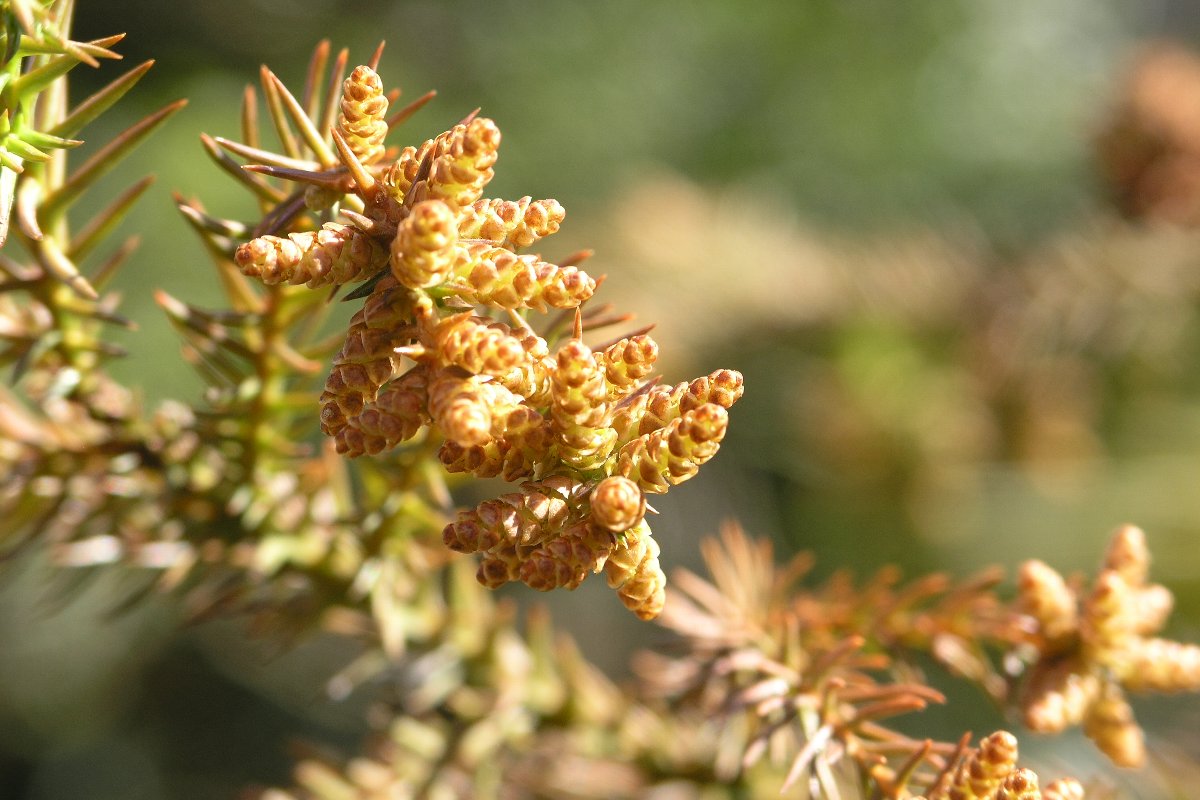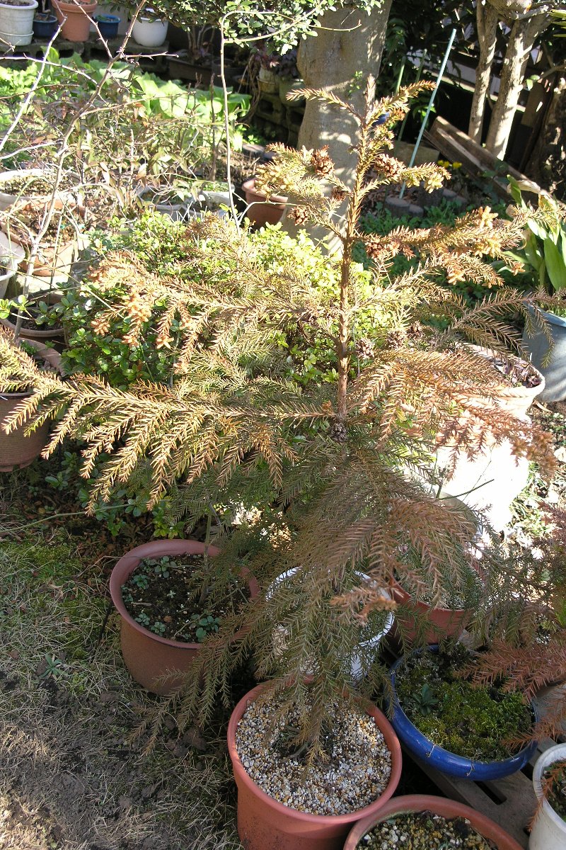 寒さが続いたことしだが、3月も中旬になると晴れれば春が近づいたと感じる日差しである。 例年だと2月後半にはスギ花粉で悩まされているが今年は3月始めごろから花粉が飛び始めた。我が家の庭に鉢植えした杉の木の花粉が最盛期を迎えてきたので記録として花粉を抱えた杉の実を撮影した。昨年夏の天候不順で今年のスギ花粉飛散量は昨年の半分くらいとの予測で飛散量が少なく花粉症の症状が昨年に比べて軽い。これから暖かい日が続くと花粉飛散量が増えるだろうが。。。 参考(2012年2月27日)