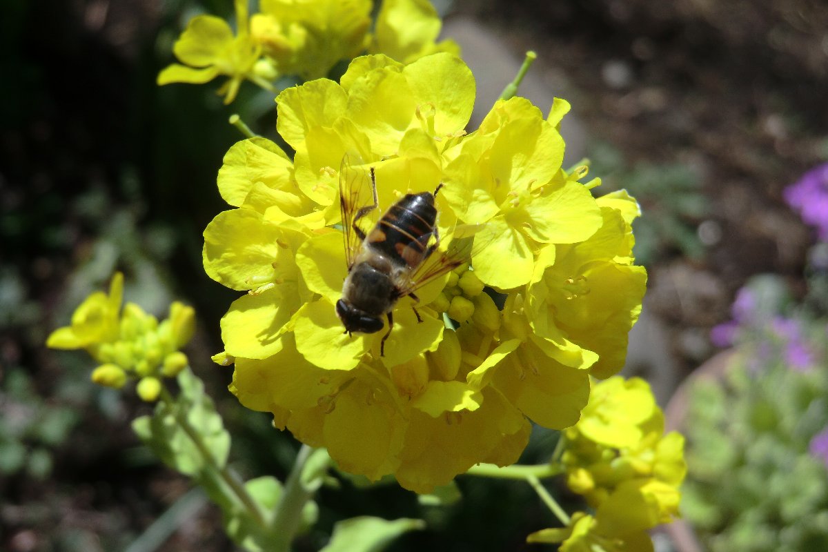 ロベリア・ホット・ラベンダの蜜を集めるクマバチ ![]() 菜の花の蜜を集めるミツバチ ![]()